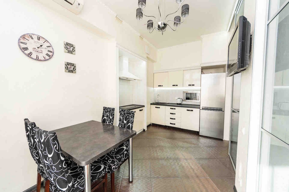A comfortable large Appartment with a good and new renovation with all Convenience.In the best safest zone and greenest area of Kiev. Near the house there is a large park, a canal, a river, shops, restaurants. Also the metro and public transport are on walking distance.The best option for a weekend or a long period in the capital of Ukraine