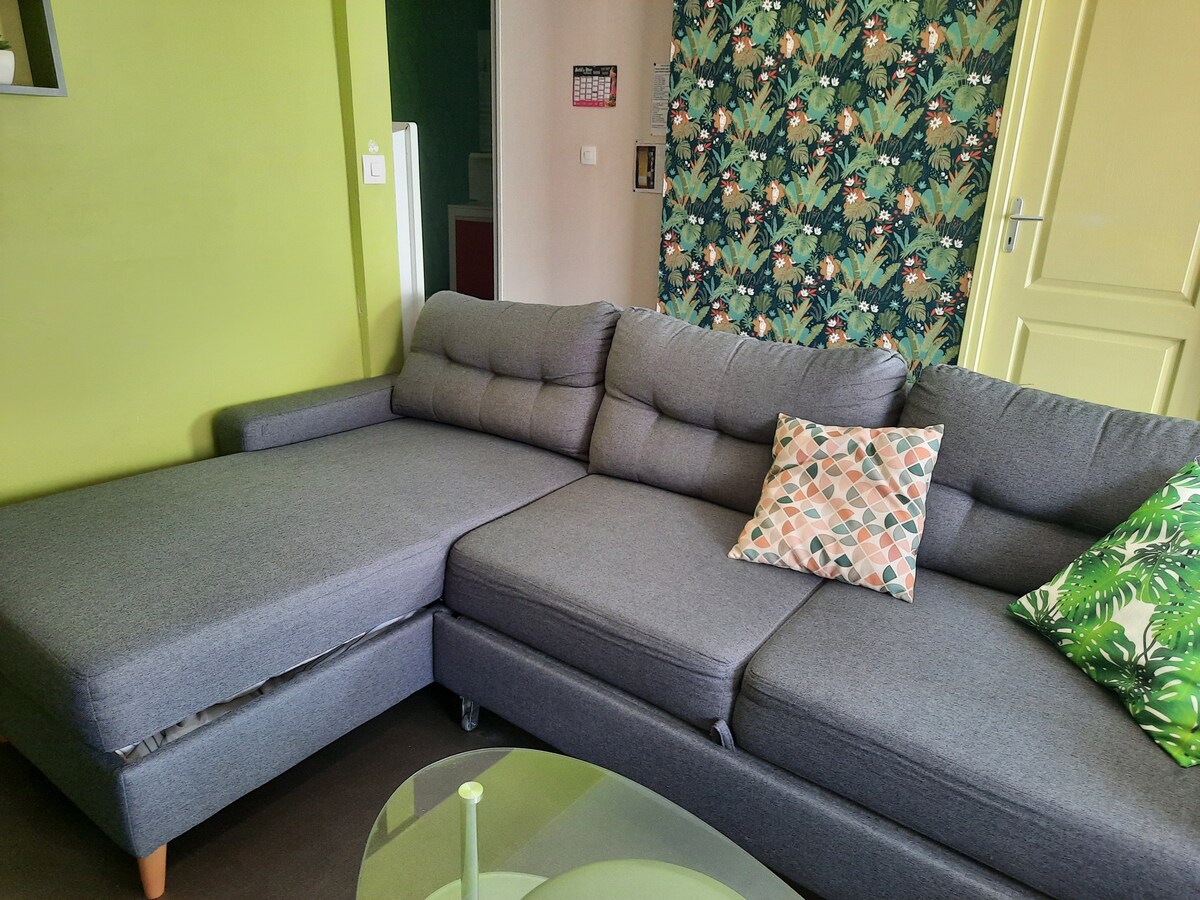 Have a pleasant stay in this comfortable and bright fully equipped studio. The accommodation has the advantage of its disadvantages: close to the roads, it is located on a main artery close to a traffic light... We cannot be held responsible for the noise of the city.