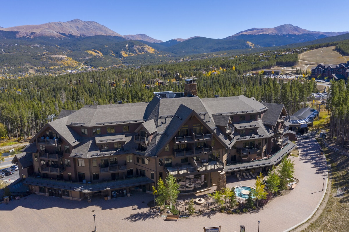 🎿 Ski-in/Ski-out 4th floor King Studio. Unbeatable location at the base of Peak 9 w/ direct access to Quicksilver Chairlift, ski school & just off Main St. Find ultimate relaxation in the 4 hot tubs, indoor/outdoor pool, sauna, steam room and in room AC in the summer. Paid parking available or leave the car and take the shuttle for stress free travel. Storage lockers available. Sleeps 4: new king bed & queen sleeper sofa. We send a great planning guide!