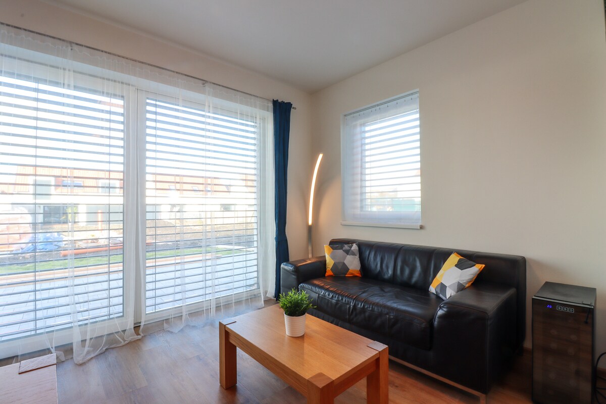 Stylish accommodation in Hustopeče near Brno in the privacy and tranquility of a historic 16th century town house in the middle of the city center. Ideal place for couples or families with children who want to get to know the beauty of South Moravia in comfort. The apartment offers comfort for 2 to 4 people on an area of 55 m². Spacious living room with fireplace and French windows, along with a double bed and the possibility of two additional beds. It also includes a fully equipped kitchen with a dishwasher and a large round dining table ideal for spending time together.