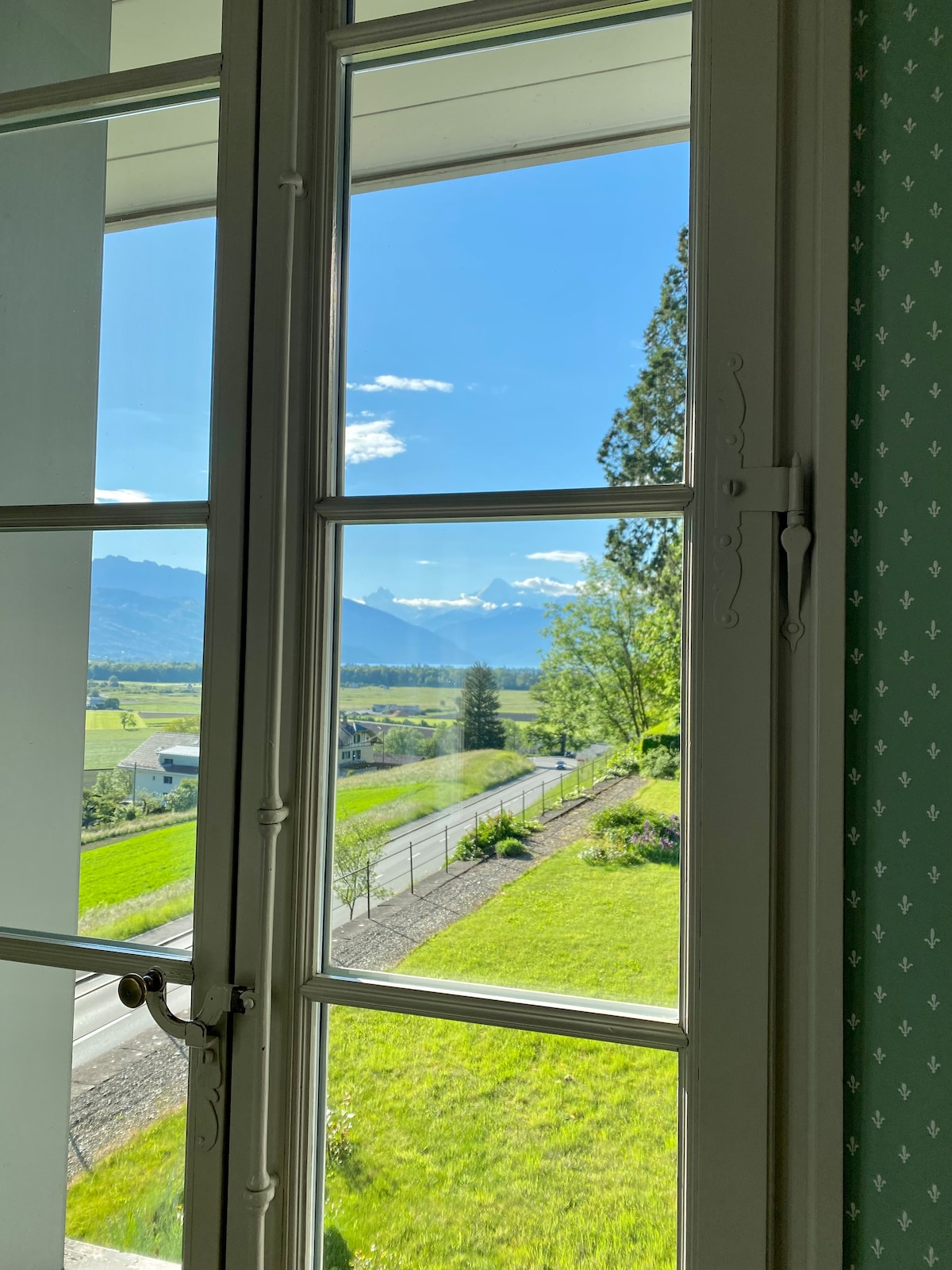 Heimberg is an ideal starting point for excursions to the Emmental, Bern or Thun, the Gürbetal/Gantrisch region or the mountains of the Bernese Oberland (Interlaken, Grindelwald, Jungfraujoch etc.). The studio looks west with a wide view of the Gantrisch area. Therefore the day ends with a lot of sun. Flowers bloom in the garden in front of the room from spring to autumn. The apartment is furnished in a cozy shabby chic style.