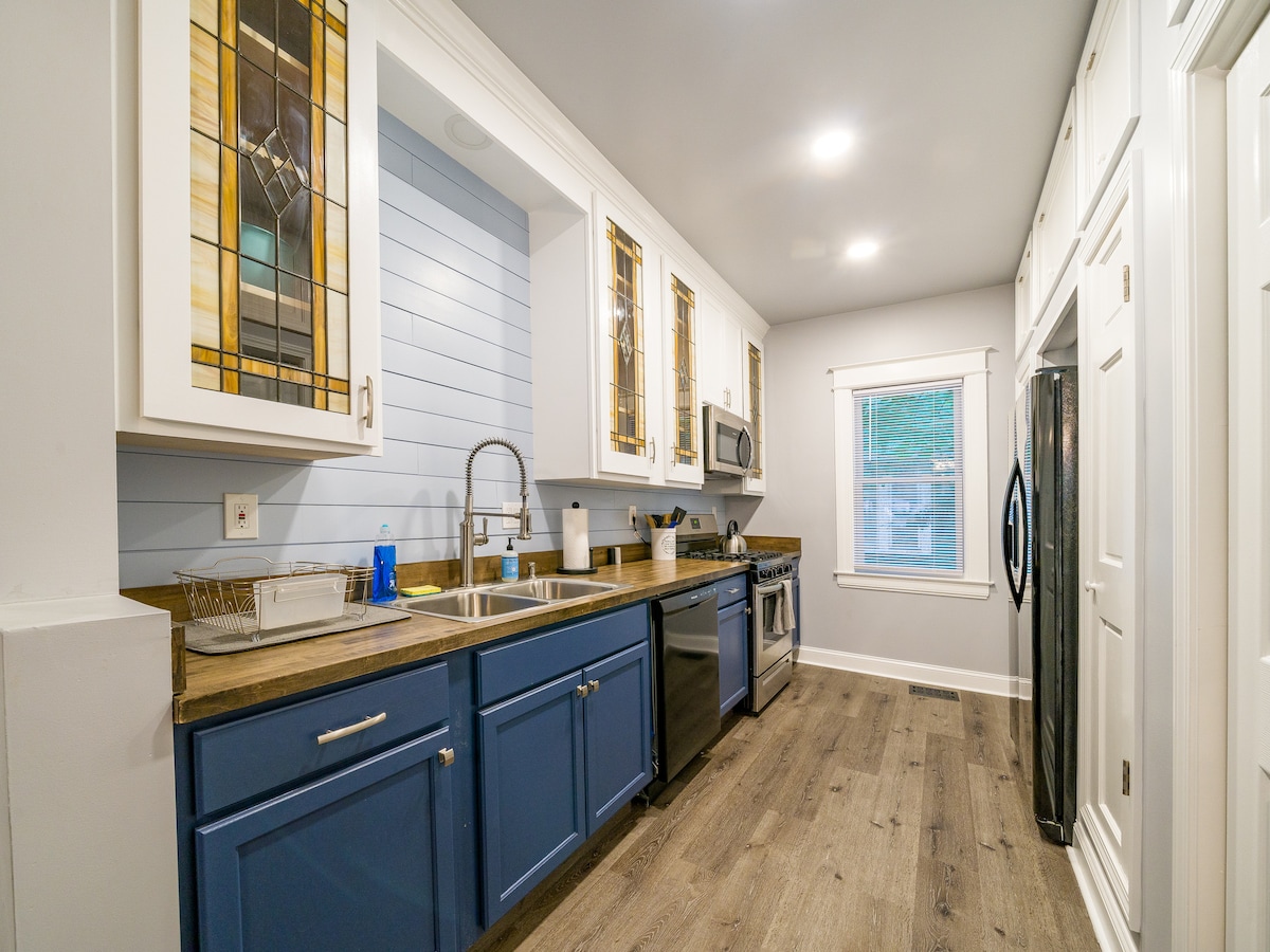 Beautifully remodeled quiet apartment in the heart of Rochester's arts and cultural district. Minutes walk from museums, performing arts theatres, restaurants, cafés, art galleries and micro-breweries. Split bath allows for use of the vanity while toilet/shower is occupied. All windows replaced in 2023. Owners live on property. Full kitchen with utensils, stacked laundry, lightning fast wifi, giant 55" UHD Smart TV, and everything you will need for your home away from home.