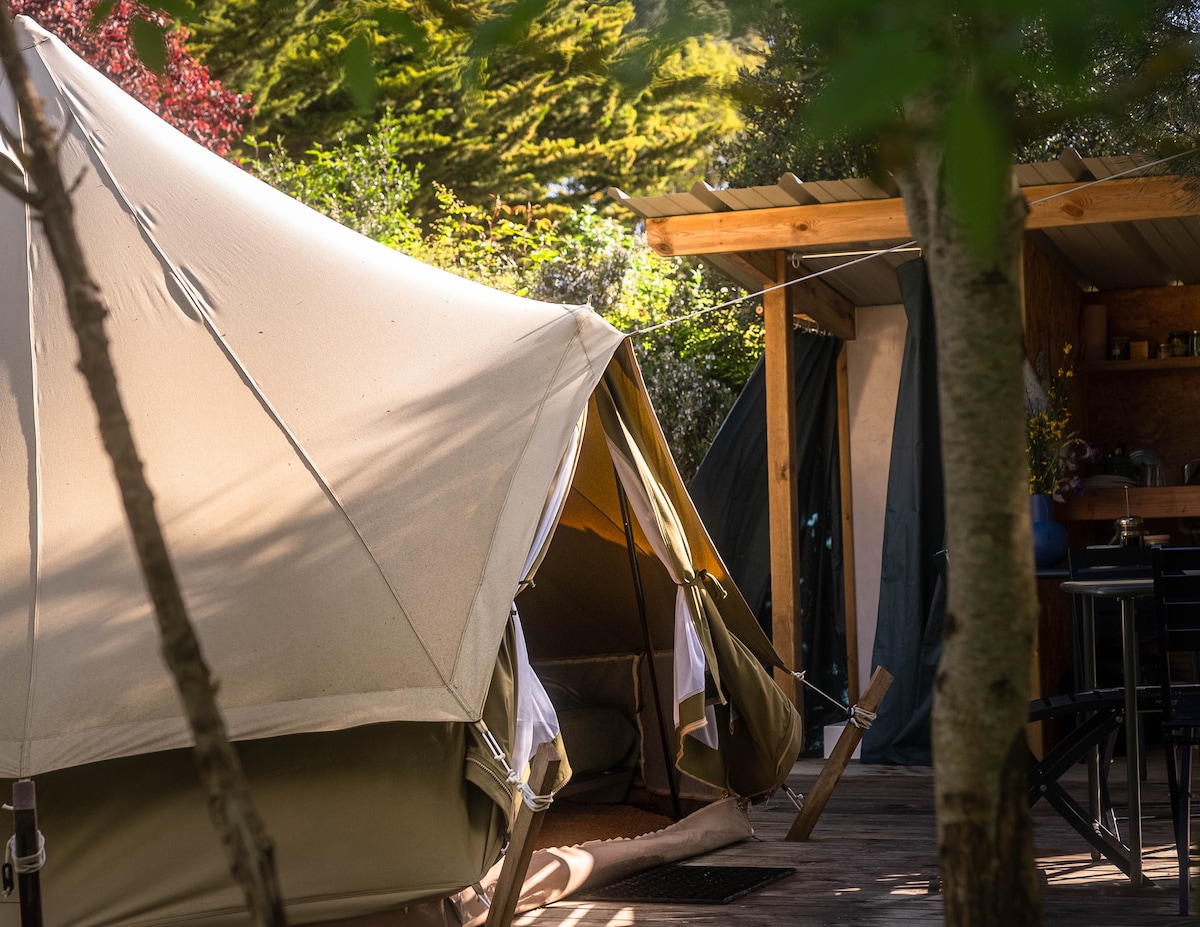 Laissez-vous bercer par les sons de la foret et du cours d'eau, dans ce logement unique. Ce camping de haut standing vous charmera par son confort mais surtout par son cadre naturel d'exception. Tente avec un vrai lit de 160 dans une ambiance bohème feutrée. Sanitaire privatif. Petits déjeuners inclus.Un brasero est à votre disposition (hors période de sécheresse), pour de douces soirées.