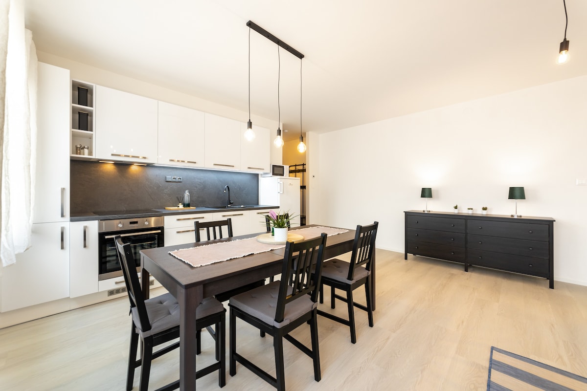 Are you looking for an apartment in Brno, close to the center but without any noise? You've found the right place! :) Only 10 minutes from the center of Brno, and at the same time in a very peaceful, quiet, and nice location in Brno-Židenice, with a view of a quiet street and a garden. You are guaranteed to get relaxed here. :) The kitchen is fully equipped with a microwave, dishwasher, and all possible tools for comfortable cooking. Extra bed possible on the couch.