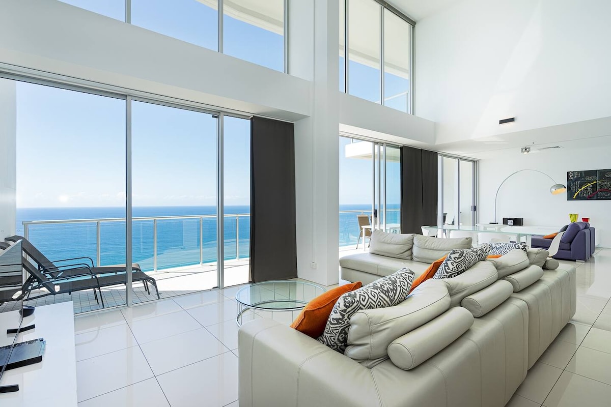 Gold Coast luxury accomm. at it’s finest! Located on Lvl 31, our generous sized 3 B'room penthouse apartment with two separate lounge areas offers unparalleled, sweeping 270° views of Surf & Skyline from Kirra to as far North as the eye can see. Brand new & beautifully appointed. WIFI, Ducted Air, Netflix, TV’s in all Bedrooms, 2 car parks, fully equipped kitchen & laundry. Short stroll to Surf Beach, Public Trans. Pac Fair, The Star, Conv. Cntr and fabulous dining options. Dream living!