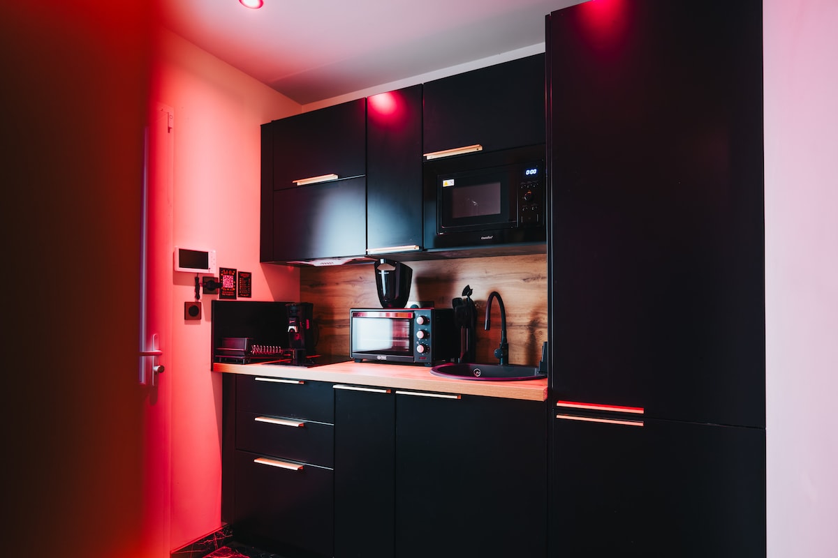 🩷💜 L'escapade sensuelle 💜🩷 💖 Love Room haut de gamme avec balnéothérapie professionnelle 🧖♀️🧖 sauna privatif pour une vraie expérience spa à deux. 🌌 Ciel étoilé LED, lumières d’ambiance, son au plafond (tablette fournie) 📺 2 grandes TV. 🔞Sofa tantra, croix de Saint-André & jeux pour pimenter la soirée. 🍴Cuisine équipée 🪴Cour extérieure 🔐 Arrivée autonome, ménage minutieux & désinfection après chaque séjour. Ménage inclus dans le tarif