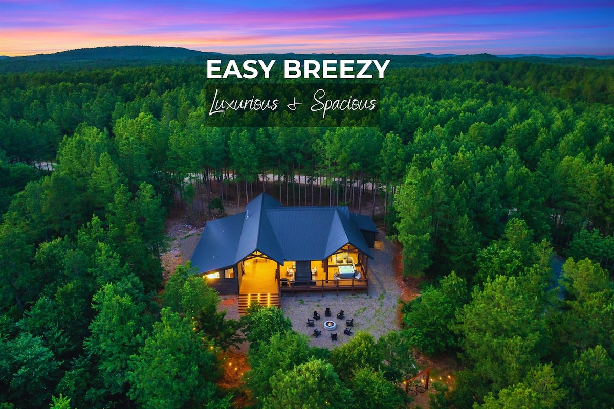 Luxury creek-side escape on 2.5 private wooded acres where the only sounds are flowing water and birdsong. This brand-new designer build sleeps 10 with a detached king suite for ultimate privacy. Minutes from Hochatown but feels like deep forest seclusion—the upscale Broken Bow retreat that ruins all others. • Hot tub in the trees overlooking the creek • Fire pit under the pines for stargazing • Kids' playground + arcade + karaoke • Spa finishes & premium everything throughout
