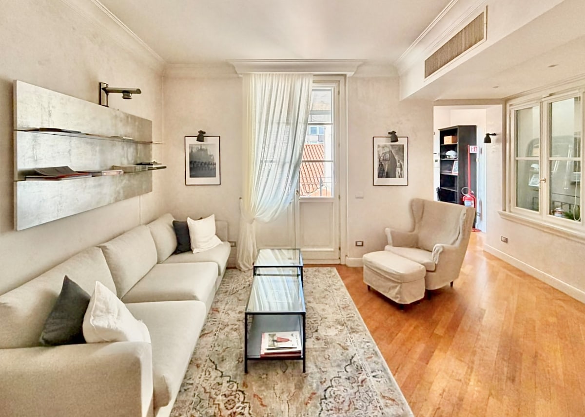 IN THE MOST IMPORTANT STREET IN MILAN Corso Vittorio Emanuele, a few steps from DUOMO Cathedral (2 minutes walk) and all the major points of interest. The apartment is located on the fifth floor of a historic building, in an elegant and prestigious context. Luxurious and bright, furnished in a modern style with: bedroom, living room, kitchen, bathroom and a splendid flowered terrace with a view.