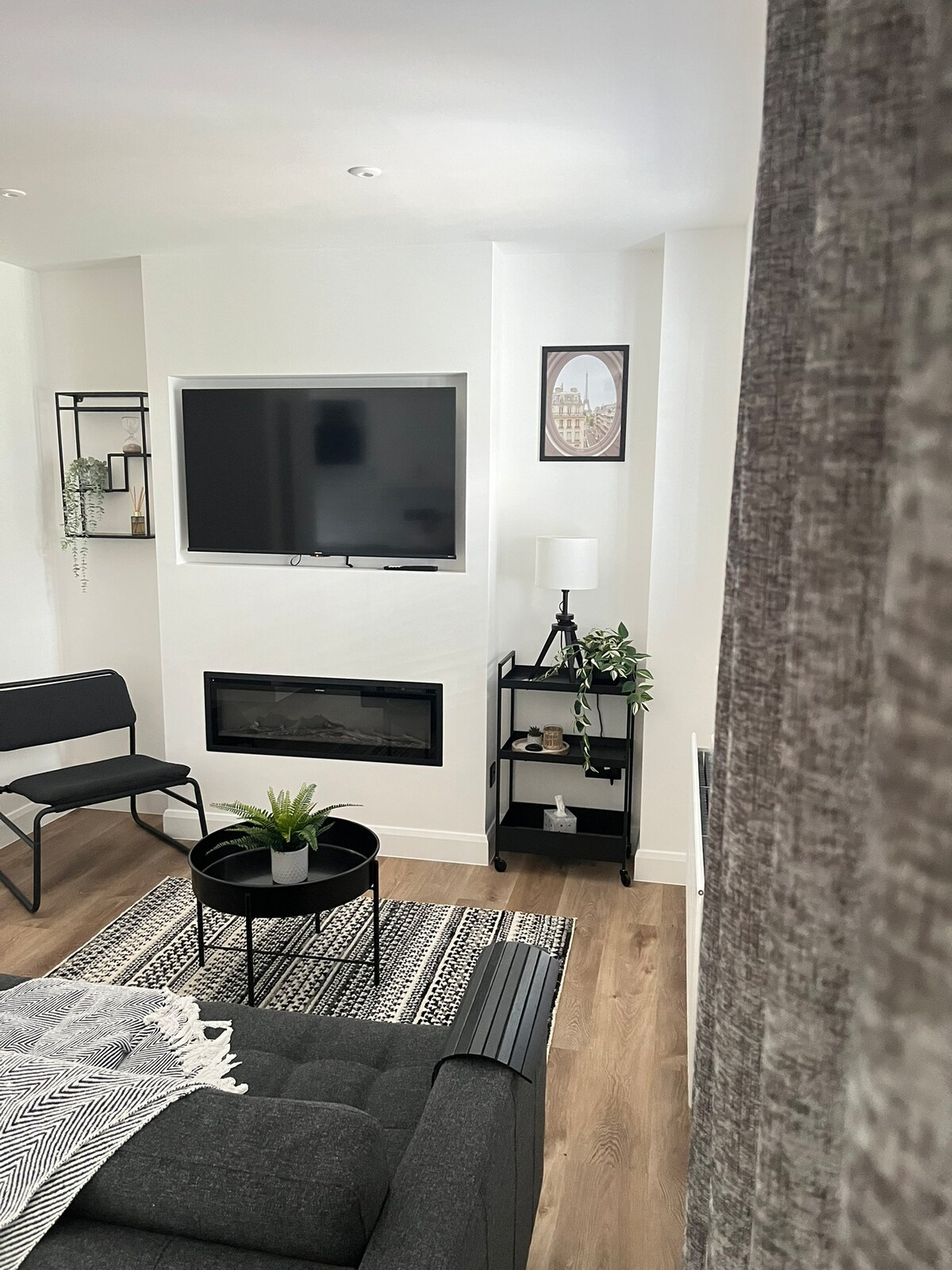 Our self-contained, ground-floor studio apartment for two guests, is one of just two units on site. It is a retreat, a practical workspace, or a convenient base for exploring. The kitchenette has a fridge, microwave, hot plate, toaster, and mini-oven, for cooking meals in . Fully equipped shower room, electric shower. The main area, has a king-size bed, sofas, a table and chairs, a log burner. It benefits from its own private entrance via a shared corridor with the upstairs apartment.