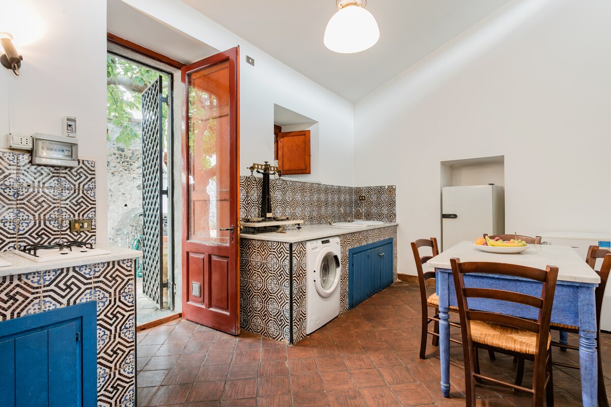 The Alcova house is inside Villa Lionti along with 5 other houses, all available on the Airbnb site. You will sleep in an 18th-century alcove with frescoes, decorated walls, fine furniture, carpets, a private patio, inside a fortified 18th-century baglio in lava stone Having decided to carry out a "conservative/philological restoration" some details such as floors, paints, wall finishes, doors, windows, "rustic/rural" appear compared to today's standards. WiFi up to 300 Mbps