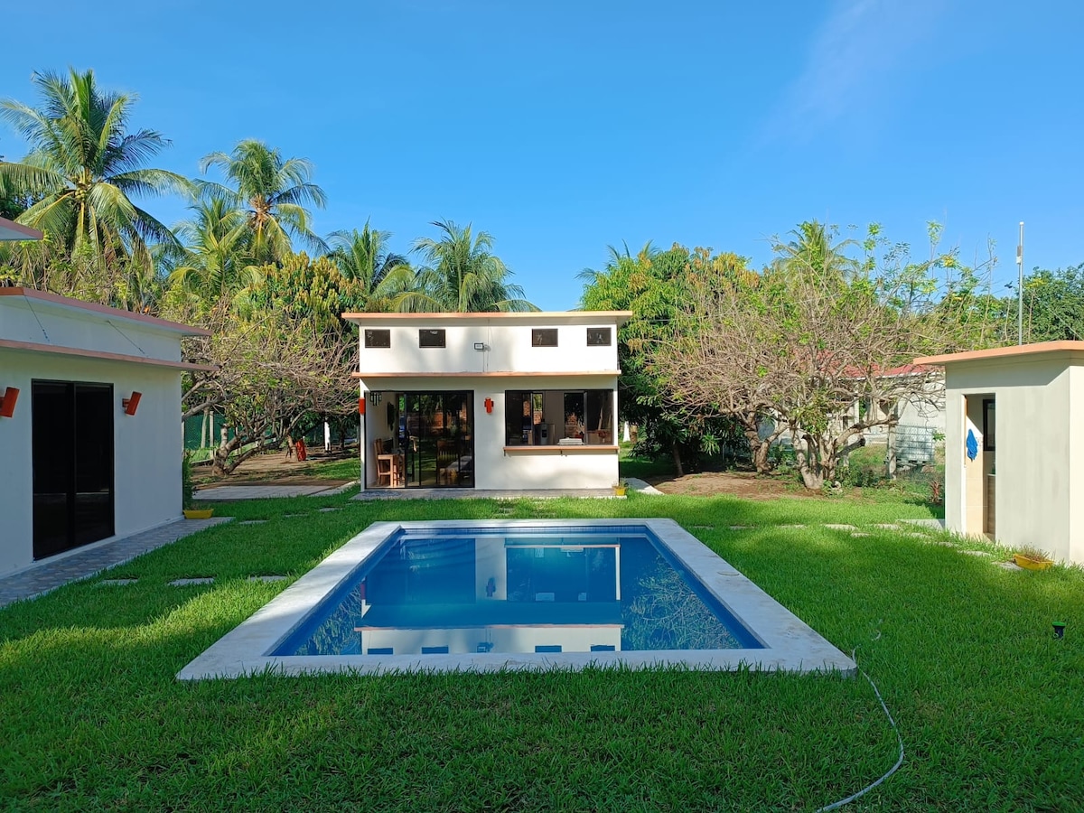 Newly built, spectacular oceanfront beach house. This property has a main house with three bedrooms with their own bathroom and air conditioning in each room. The social area has a bathroom, main dining room, breakfast bar, and bar. All this just a few steps away from a refreshing filtered pool. The gardens are grassy and their spectacular green contrasts with the blue of the sea. The kitchen is fully equipped with a refrigerator, freezer, stove, and all the utensils.