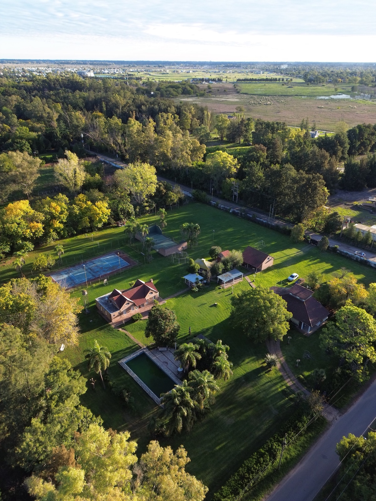 Discover our tranquil country estate, a green paradise just 140 km from CABA. Set in a neighborhood of estates with lush greenery, walking paths, deer sightings, horses, and activities. 10 km from Carmen de Areco, along National Route 7. Fully equipped house, garden with a large pool, fruit trees, and spacious galleries. Ideal for families or groups seeking nature's serenity