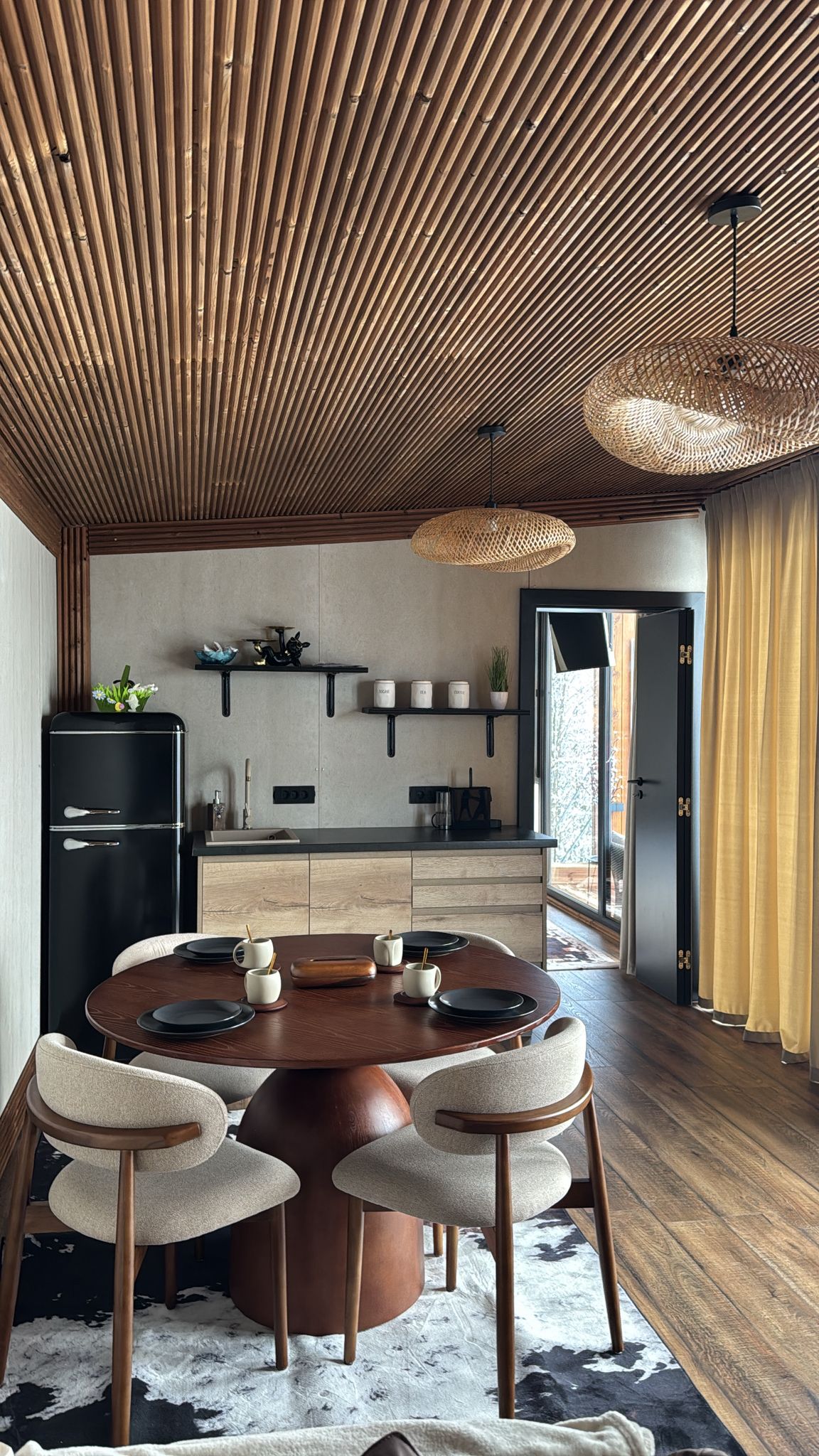 The cabin lies amidst the inner courtyard's serene setting, a haven of comfort and relaxation. The cabin's design harmonizes with its natural surroundings, offering guests a serene respite from the outside world. Inside, the cabin exudes a welcoming atmosphere, providing a cozy retreat after a day of exploring the nearby scenery We offer Sauna and "Ciubăr" (Traditional Wooden Hot Tub) acces for 450 lei/day each