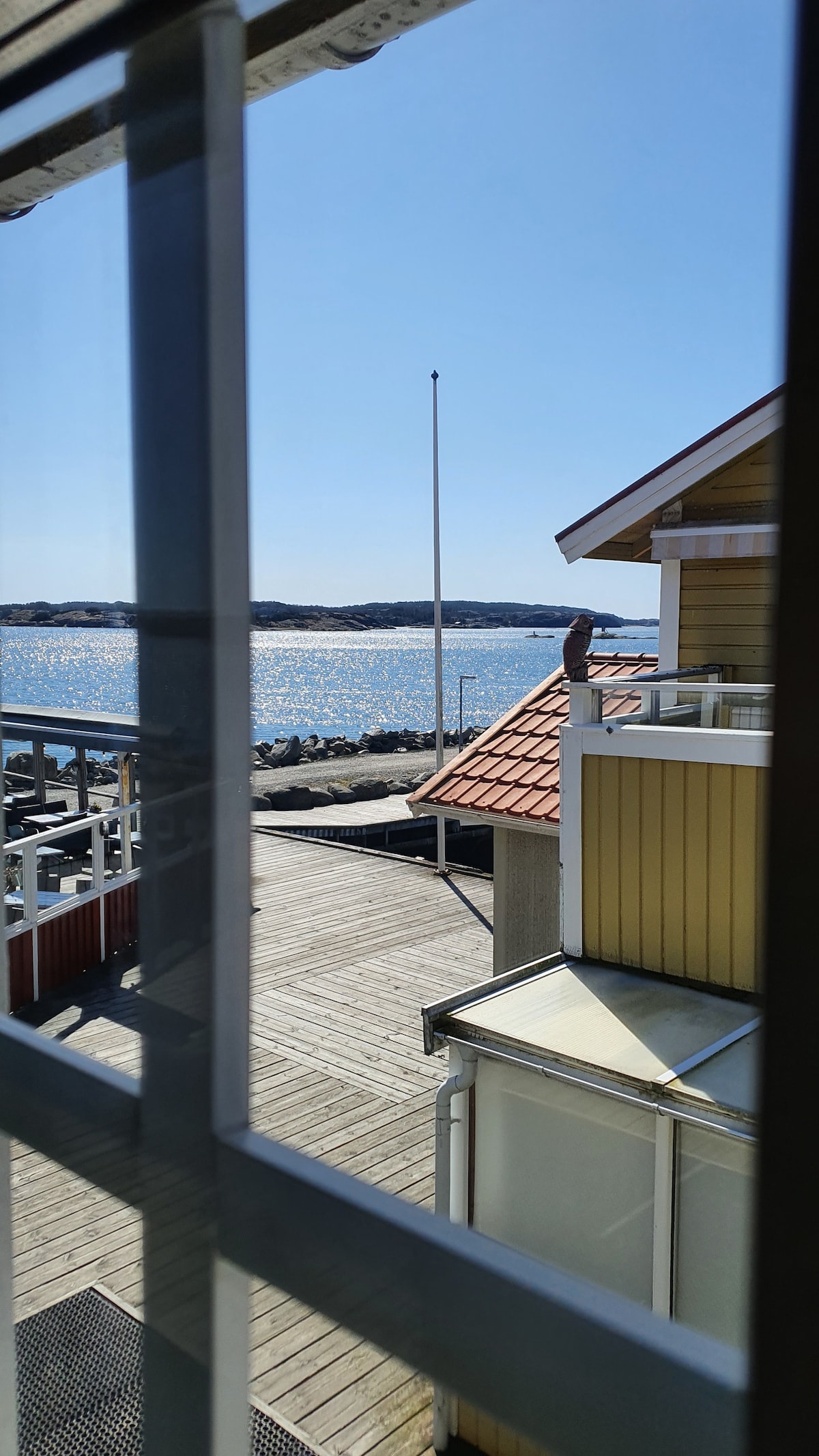 Newly-built cottage right by the sea with a large jetty and a private berth. The dock is made for you to enjoy all day, as there are sun loungers, swimming ladder, outdoor furniture and barbecue. Within walking distance, you can rent kayaks, paddle tennis courts and a spa. The cottage has an open living room and kitchen with stunning views of the sea. Toilet with shower and washing machine. Upstairs, there are 3 bedrooms. One with a double bed and a private balcony, one with 2 single beds that can be put together and one with a 120 cm bed.