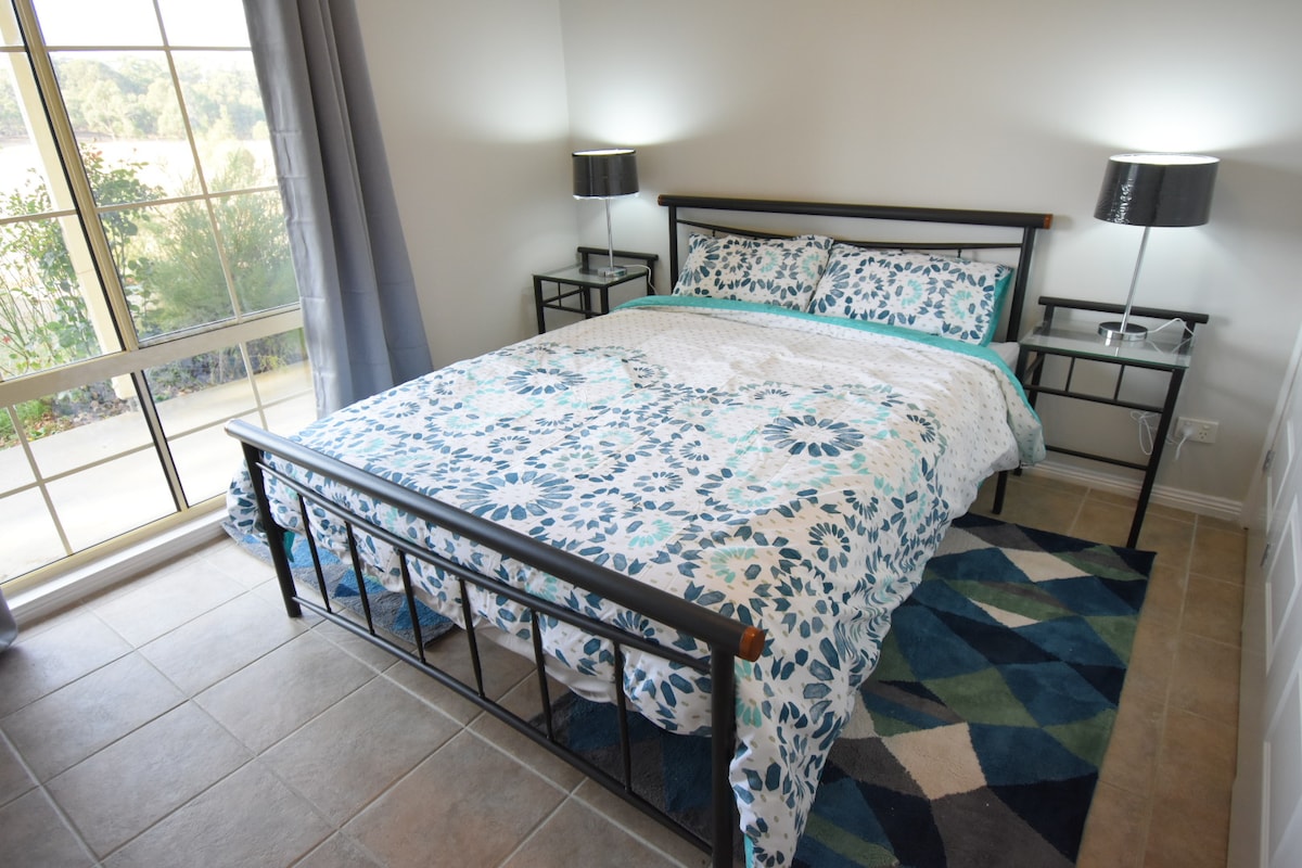 Escape to the country for some wifi & TV free down time in this lovely renovated mud brick cottage. One double bedroom with ensuite; lounge and dining facilities, including fridge and microwave , double hot plate & BBQ for your cooking convenience; and a wood burner heater to snuggle up in front of in the winter months. Also there is a fold out couch to sleep the kids or extra guest. With beautiful views over the dam This lovely retreat will offer you time to relax and recharge. Pets welcome.
