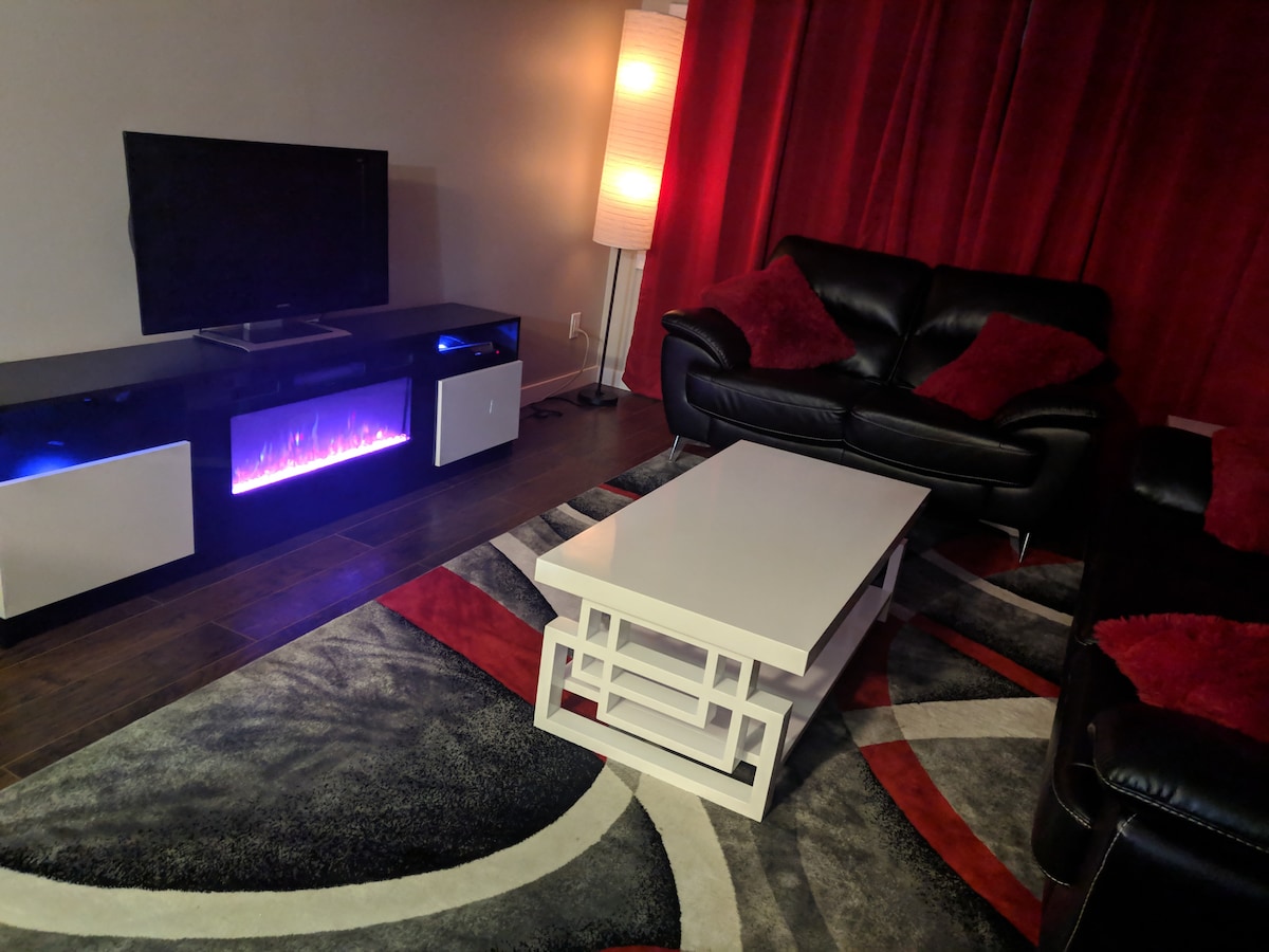 Newly renovated suite located in Burns Lake close to Boer Mountain bike & walking trails. Open concept 800 square foot suite with a queen bed and additional queen Murphy bed. Kitchenette, laundry, 50” smart tv with fibre optic tv and internet, comfortable seating . Spacious backyard with fire pit area and BBQ available.