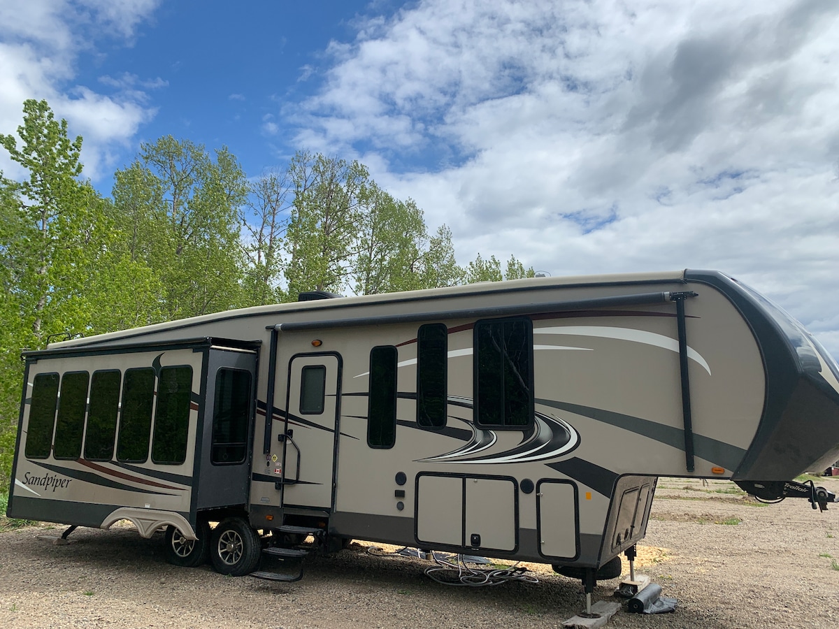 Come stay with us and experience what lake life is like on a golf course!! Our 38’ Forest River Sandpiper comes with a fully equipped kitchen, full bathroom, king size bedroom, full size hide-a-bed couch, 2 rocker recliners, dining table, AC, fireplace, picnic table, fire pit, on a semiprivate large site. After your round stop by the lounge/licensed patio for a burger and a beer! Molyhills golf resort also offers nine other 30 amp sites for your friends or family to bring their own RV!