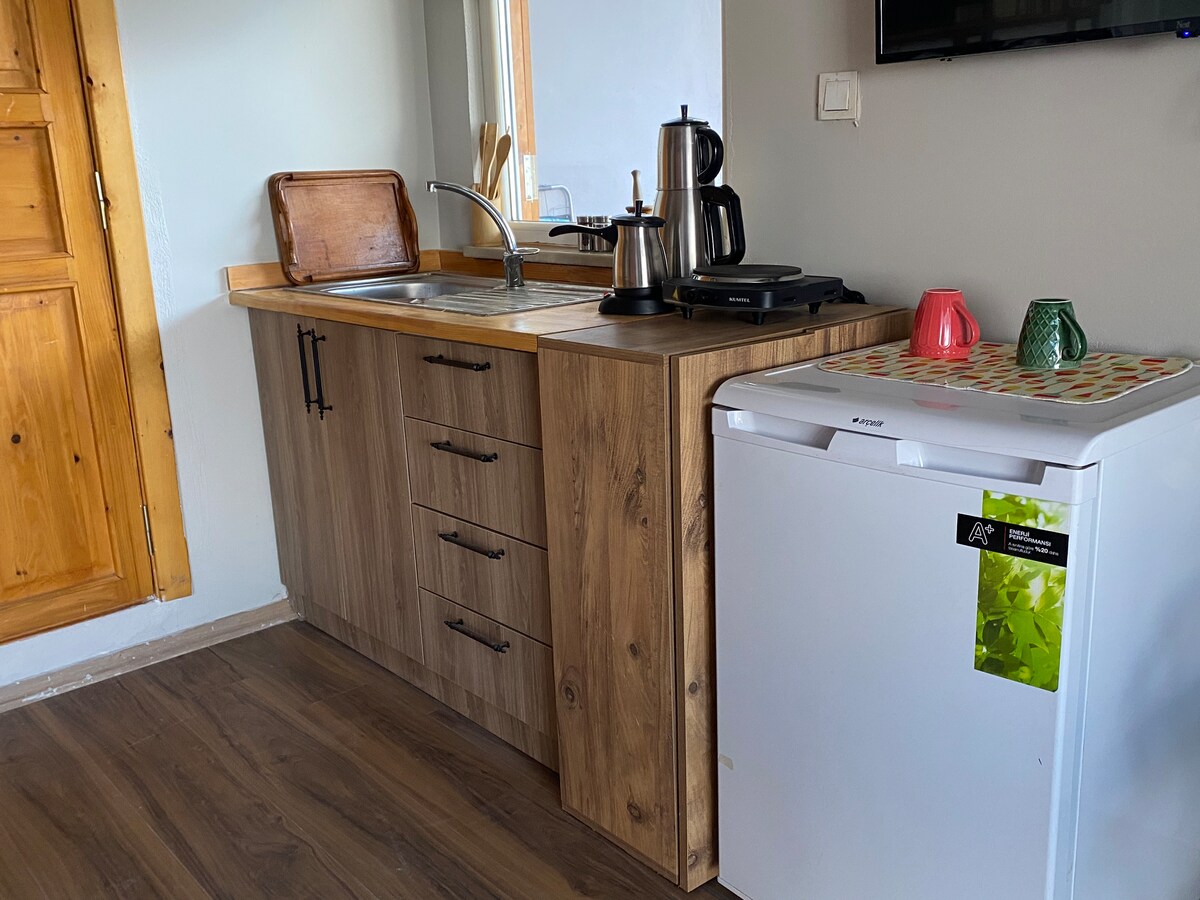 6 chalets located in the forest, 15 minutes from Bursa city center and 20 minutes from Uludağ ski resort. 2-storey 80 m2 chalets on a total of 13,000 m2 of land. A wonderful getaway and resting place with its own private garden, hiking trails and private viewing terraces. Our houses are heated by a central heating system, so you will not compromise your comfort on harsh winter days. If you wish, you can prepare meals in your own kitchen or you can choose from our restaurant