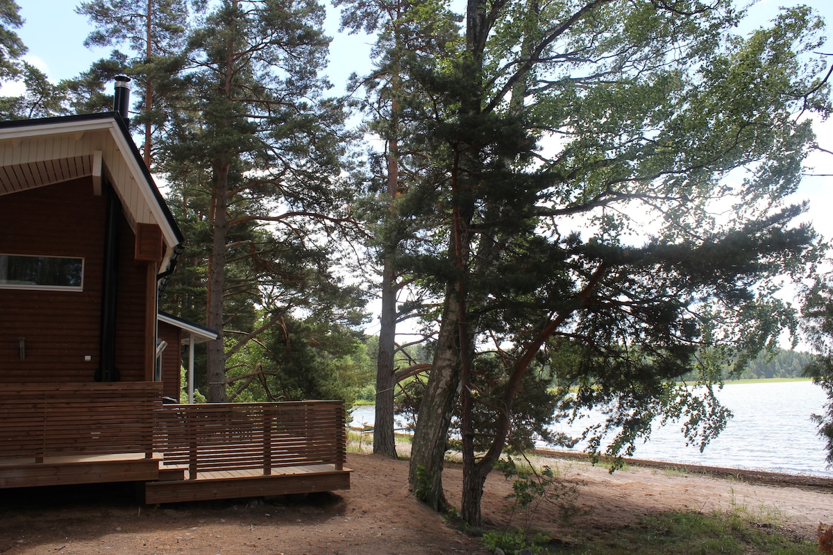 Relax in Villa Ranja, right on the beach! - Private 50m shallow sand beach (part of longer beach, split among the cabins along the beach) - Kitchen-living room, fire place, sofabed (160cm) - Bedroom, double bed (160cm) - Sleeping loft with 4 mattresses - Wood heated SAUNA, 2 showers - Toilet - Big terrace, bbq This is on the countryside, by the sea, on a calm place -however with neighbours around (40 m closest). Best reachable by car Well equipped, modern but some trace of use, built in 2011.