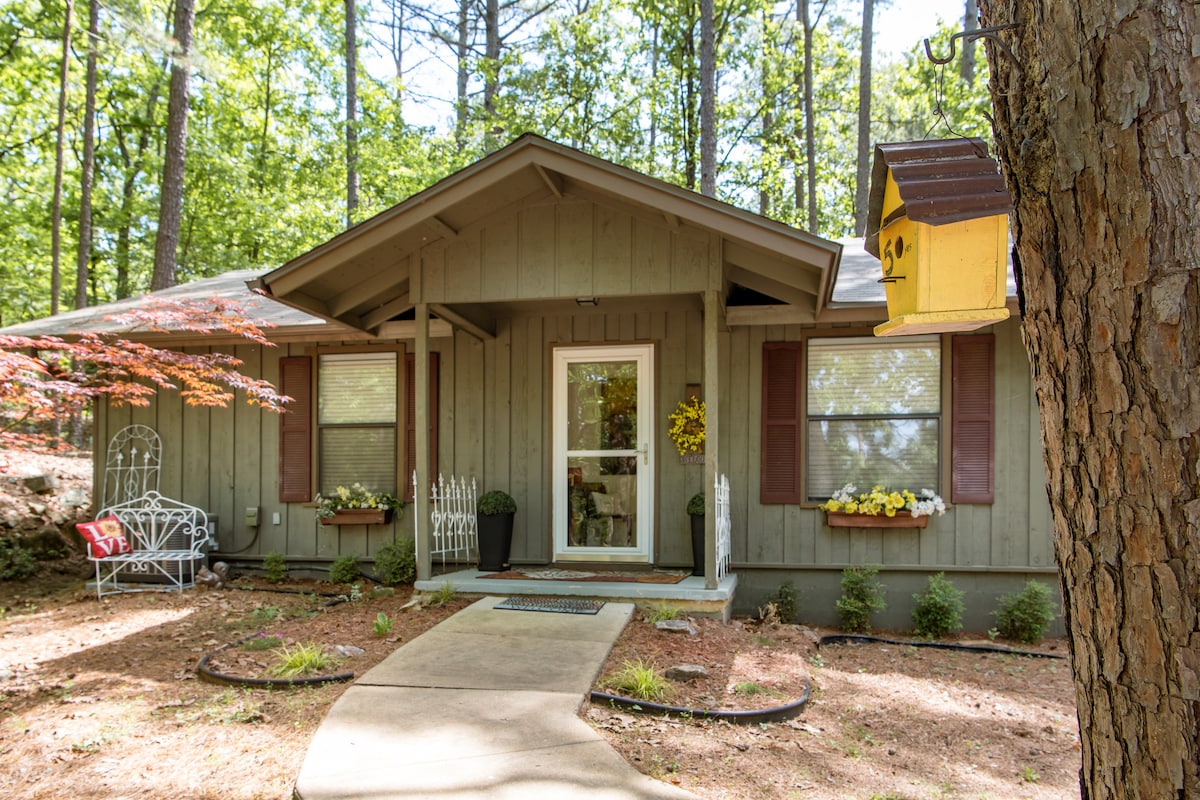 Fern Cottage is on rear of our property with private entrance as well as its own outdoor spaces which include seating, fire pit and lots of shade, front entrance has porch with swing. It is fully furnished There is an under counter fridge in the kitchen and full size fridge located outside your bedroom door in garage. Off street parking provided. NO smoking unit. No exceptions. No more than 2 pets allowed NO AGGRESSIVE PETS. There is a $25 pet fee please be courteous and pay when reserving