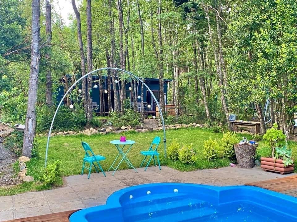 cabaña bosque y piscina