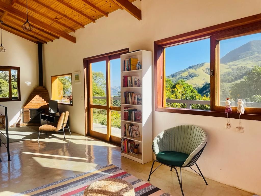 Cozy and spacious house with stones and wood in an architectural project that integrates the nature of the native forest with a stunning view of the Peixe River. The house offers a high standard of privacy and tranquility, covered with recycled peroba wood, the house invites you to relax. Be ready to rest in the middle of the Serra da Mantiqueira and wake up in a magical setting of the Peixe River with all its wonderful nature. We offer breakfast optionally!
