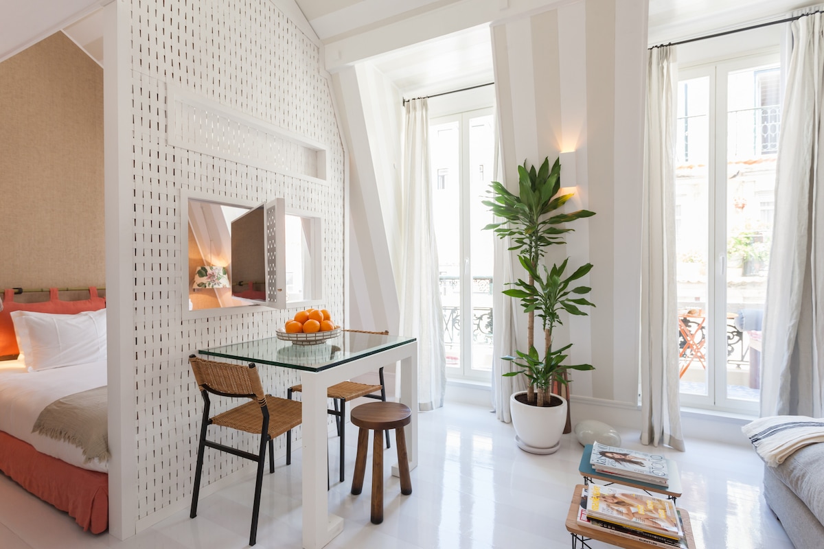 A stylish 1-bedroom rooftop apartment with a private terrace and stunning views of the Sao Jorge Castle and Tagus river. Located in the heart of Lisbon, in Marques de Pombal close to the emblematic Eduardo VII park and Avenida da Liberdade. ⚠️PLEASE NOTE there is construction work next door and may be noisy during the day** The rooftop apartment is accessible via an outdoor spiral staircase. Due to the stairs, please note that this apartment is not suitable for people with reduced mobility.