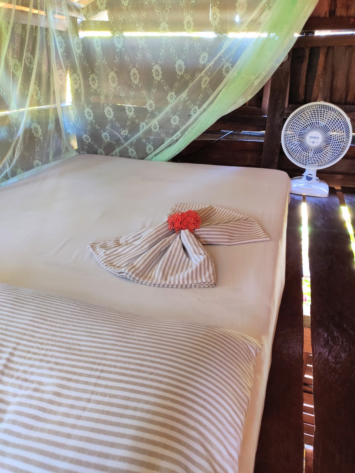 The chalet has a kitchen, bathroom, and a mezzanine with a double mattress and a fan. The chalet is made of 100% recycled wood. Because Boipeba is a place with a nearby forest, we bear the consequence of having to deal with many mosquitoes. The chalet has a mosquito net and also a fan. But because it is a chalet with gaps, it is recommended to use repellent when in the kitchen and also in the hammock. THE SHOWER IS NOT ELECTRIC. Allow yourself and be open to new experiences. ✨