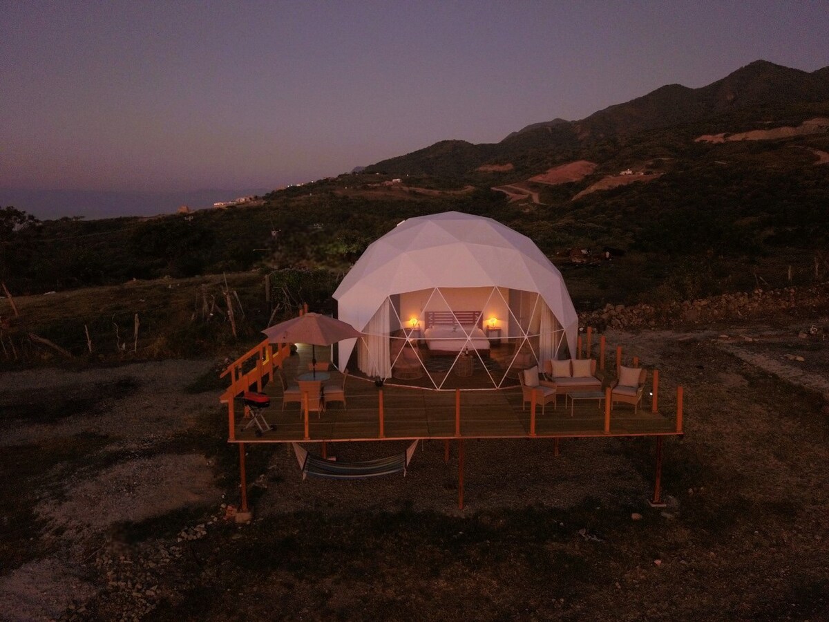 We have 3 more https://abnb.me/dobQuKhzUHb https://abnb.me/J2QI6zIzUHb https://abnb.me/4CukDRDzUHb This dome is a shell structure built from metal rods in this case, that allow the dome to withstand very heavy loads and high winds despite its lightweight structure. Most of the time when you think of glamping being off-grid comes with it. While you're not exactly off-grid here, as you do have electricity and wifi but you are off the beaten path enough to catch the sunset&sunrise from your dome.