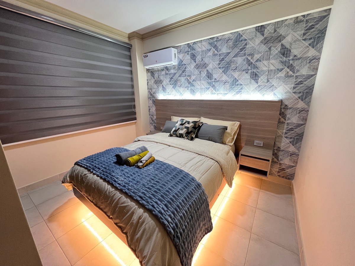Apartamento de una suite, totalmente equipado y diseñado para su comodidad con distintas áreas como lavandería, cocina, living, y comedor. Así mismo cuenta con Aire Acondicionado, Internet WiFi, Alexa, Televisores Smart, Chromecast IPTv, con acceso a más de 400 canales de televisión y contenido de las principales plataformas de streaming. Contamos con seguridad privada, recepción y atención al cliente las 24 hrs. del día. Brindamos desayuno continental (opcional)