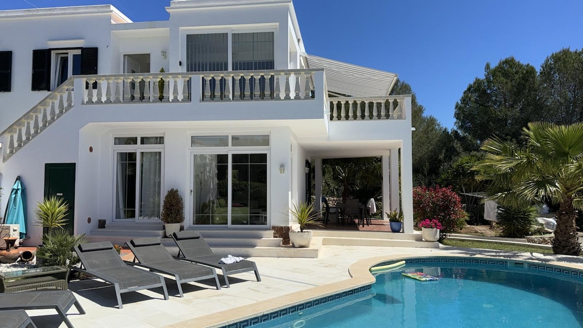 A charming villa with ocean views, near the great Son Bou beach, on a quiet street at the end of the Torre Soli Nou development, an 18-minute walk to the beach and 4 minutes from Cami de Cavalls that leads to Santo. It has an outdoor terrace and a beautiful pool (5.5x3.5 meters), not heated, surrounded by a very well-kept flower garden. A staircase leads to the terrace to enjoy the ocean view. https://instagram.com/lamaison_de_lo?utm_medium=copy_link