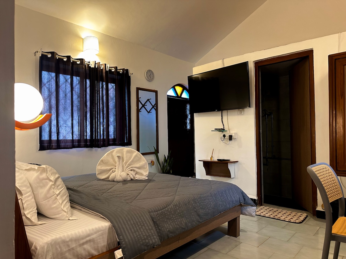 Independence, simplicity and modern luxuries in a 1BHK with hall, equipped kitchen, master bedroom with attached bathroom and a large private balcony. Sink into the 8-inch luxury king mattress, relax by the pool over snacks and drinks, or work comfortably with fast Wi-Fi while our team cares for the rest. Just 7 minutes by bike from Baga Beach, it’s your full Goan extravaganza on a smart, budget-friendly stay. Ideal for couples, remote workers or small families with comfort and homely freedom.