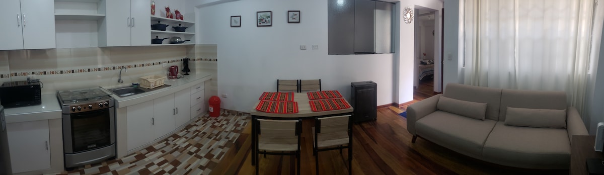 Cosy and modern private apartment. Located in the Historical Center of Cusco just 10 minutes walk from Cusco’s central plaza. Each detail has been thought for you entire comfortability. It is located in a calm and secure zone surrounded by different small shop such as pharmacies, grocery shops, restaurants and traditional markets. Everything for a suitable stay. Discover the wonders of Cusco city. We are waiting for you.