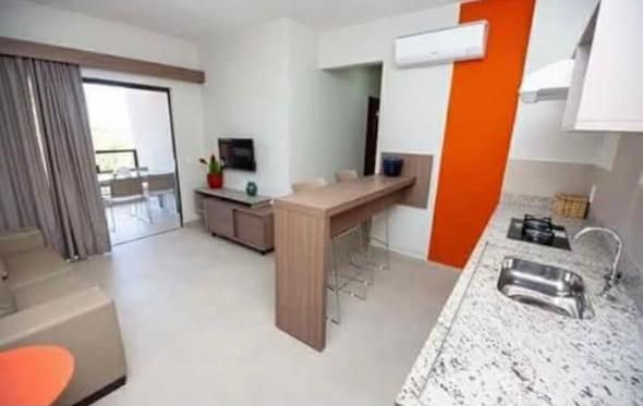 Furnished apartment for 5 people inside an ecoresort. Exclusive location, comfort, hot water pools, beach, children's playground, several restaurants and gym. Special Offer!