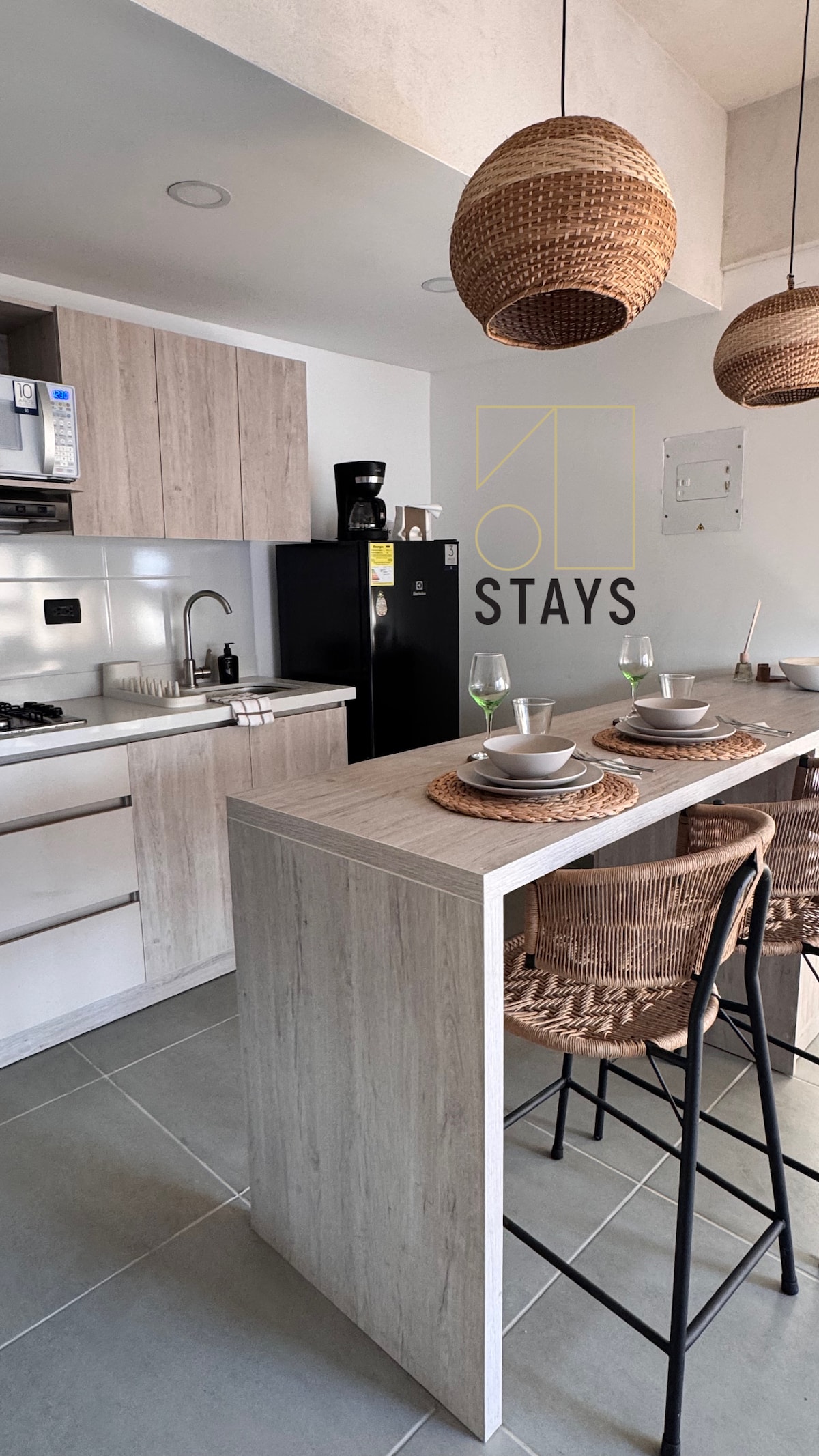 Apartamento moderno y acogedor, ubicado estratégicamente cerca de la estación del metro, vías principales y un amplia oferta comercial y gastronómica. Diseñado para brindar una experiencia cómoda y autentica, con una cuidada decoración artesanal que conecta al huésped con la riqueza cultural Colombiana. Ideal para estancias cortas o largas, con todos los servicios necesarios para una estadía confortable.