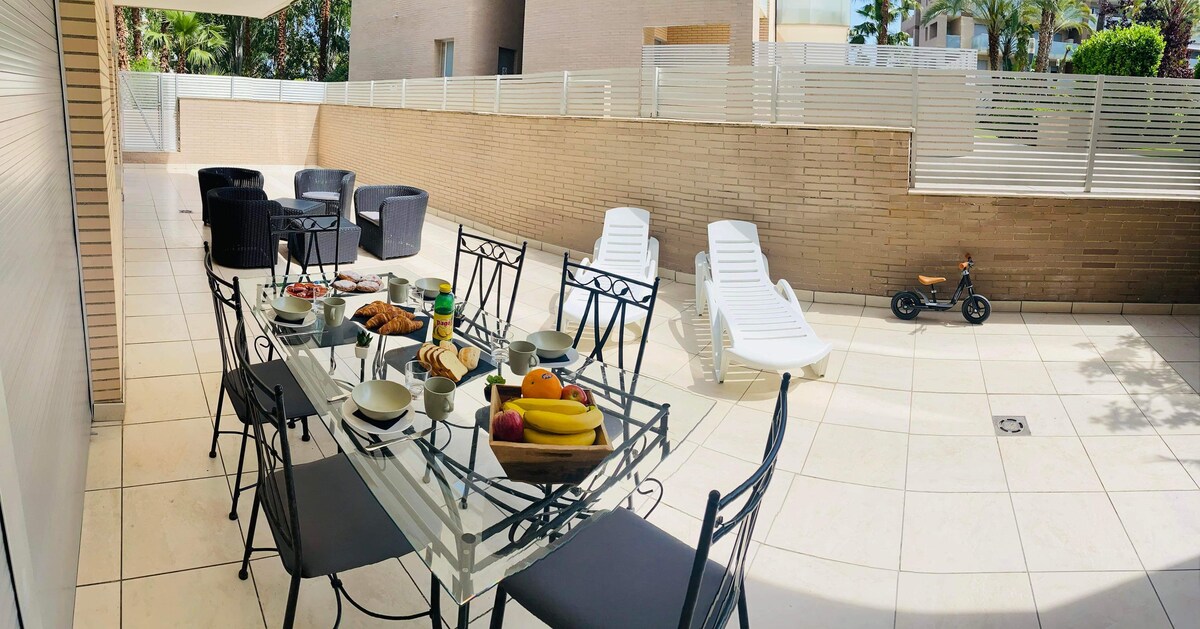 Luxurious and elegant 100 square meters apartment in a privileged environment. You can walk to Port Aventura (800 meters) and the beautiful beach of Salou (700 meters). Surrounded by restaurants but a little away from the busiest streets so that rest is not a problem. You can choose between going to the beach or taking a good dip in the pool, going to the gym, or relaxing in the spa after playing a game of paddle tennis. Ideal to enjoy unforgettable family vacations.