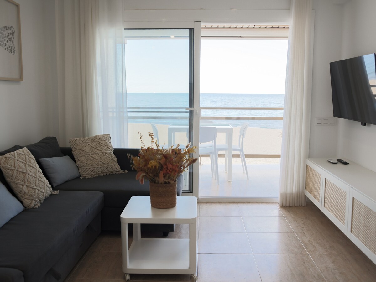 Bonito apartamento situado a segunda línea de mar, totalmente reformado y equipado. Desde este apartamento situado en una zona muy tranquila, puedes disfrutar del paseo marítimo y playa sin necesitar el coche. Esta a pocos minutos del puerto deportivo, zona de restaurantes y tiendas. Consta de 2 habitaciones, 1 lavabo completo, aire acondicionado, cocina completa y una gran terraza.