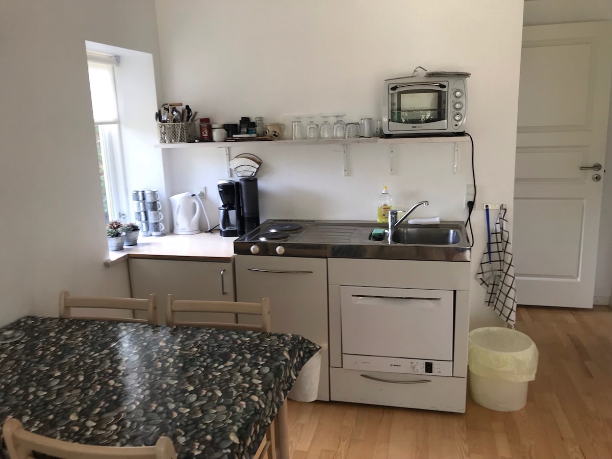Welcome to Little Barn - your perfect guesthouse in idyllic Faxe. Located close to public transportation, beach, and forest, we welcome you to our Little Barn consisting of a common area with a kitchen, dining- and living room area, as well as two separate apartments, each which have private bathroom facilities and can bed 4 people. This is an ideal guesthouse when visiting Faxe Kalkbrud, Stevns Klint or many of the beautiful beaches in Southern Zealand.