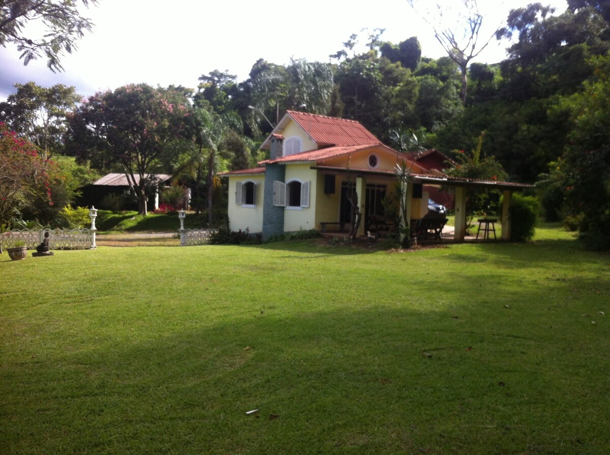 The site is a few meters from the city, next to nature at the foot of Serra das Águas. The place is very safe, with an electronic gate and a caretaker. The house is small and comfortable for up to 6 people. It has a large outdoor space with a lawn, lake, waterfall with a natural pool of running water and tropical forest. Very quiet place, ideal for those who like nature, fresh air, mild climate, bathing in running water, traveling with pets, children, families, romantic couples and a group of friends.