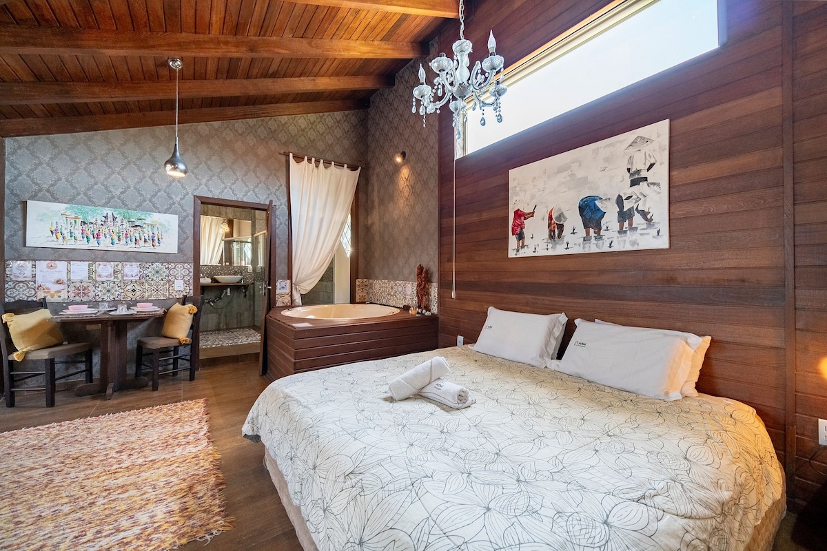 Welcome to Aldeia Niura Opy - Your Peaceful and Vibrant Retreat! Enjoy our exclusive home with an individual whirlpool and chromotherapy tub. View of Campeche Island and exuberant nature. Queen-size bed, Wi-Fi, equipped kitchen and parking available. Privileged location near beaches such as Lagoa da Conceição, Joaquina and Campeche. Book now and experience unique moments!