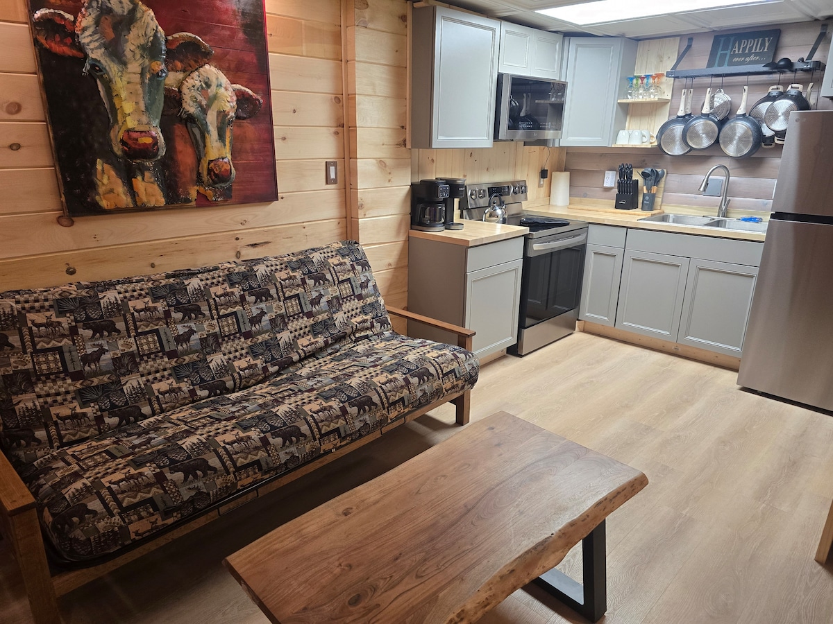 Unique, dog-friendly camper-to-tiny home conversion. Wake up to amazing views with mountains in every direction. The Allegheny Highlands rail trail greets you as you step out the front door. No pet fees! Perfect for those looking for a peaceful and safe location, just off the beaten path. Surrounded by the Monongahela Forest, and the Cheat River, this valley is an outdoor recreation paradise. Rustic and simple, the guest house offers you what you need for a comfy stay.