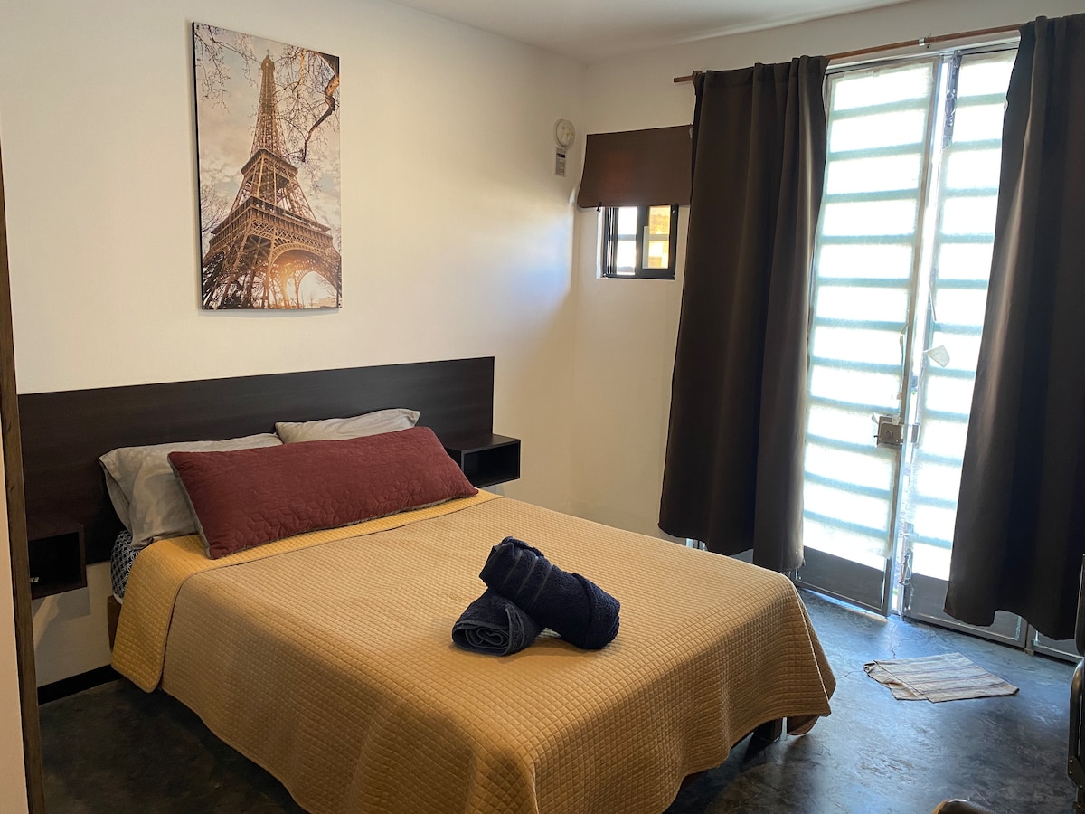 A space specially dedicated to your comfort and privacy. This mini apartment has everything you need to rest. It has a full kitchen with a refrigerator and microwave, as well as basic cooking utensils. FIBER OPTIC INTERNET. It has a work desk, full closet and bedding.