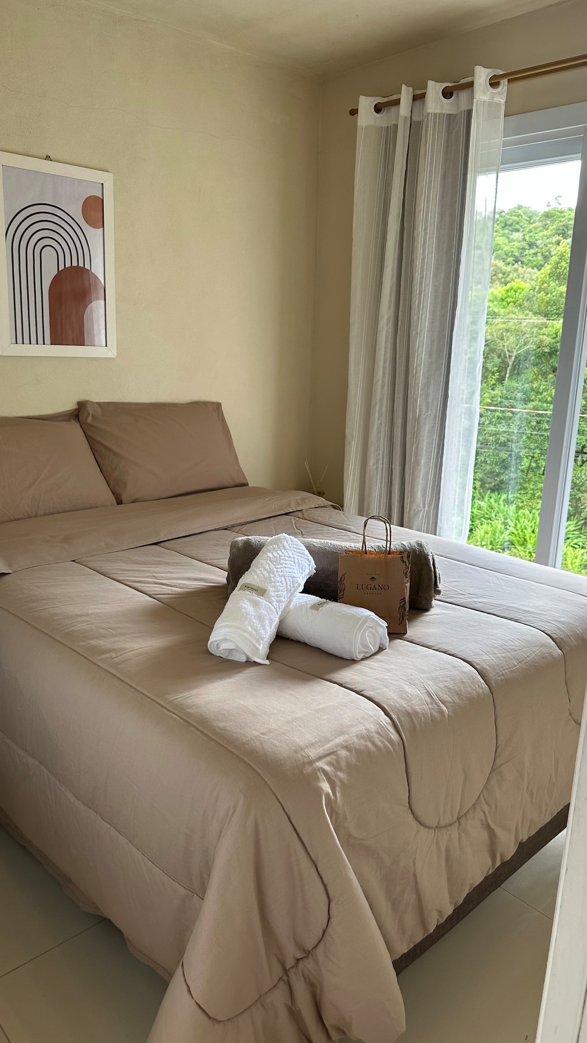 🏆 In the top 1% of accommodations, one of the highest rated in the region! New residence on the 2nd floor, with 2 bedrooms, 1 suite with balcony, 1 sofa bed in the living room, 1 social bathroom, laundry room with barbecue, integrated living room and kitchen, air conditioning, Wi-Fi and closed parking. The house is in a quiet neighborhood, has markets, bakeries and nearby restaurants. It is a 5-minute drive from the Stone Cathedral located in the centre of Canela and 15 minutes from the centre of Gramado.