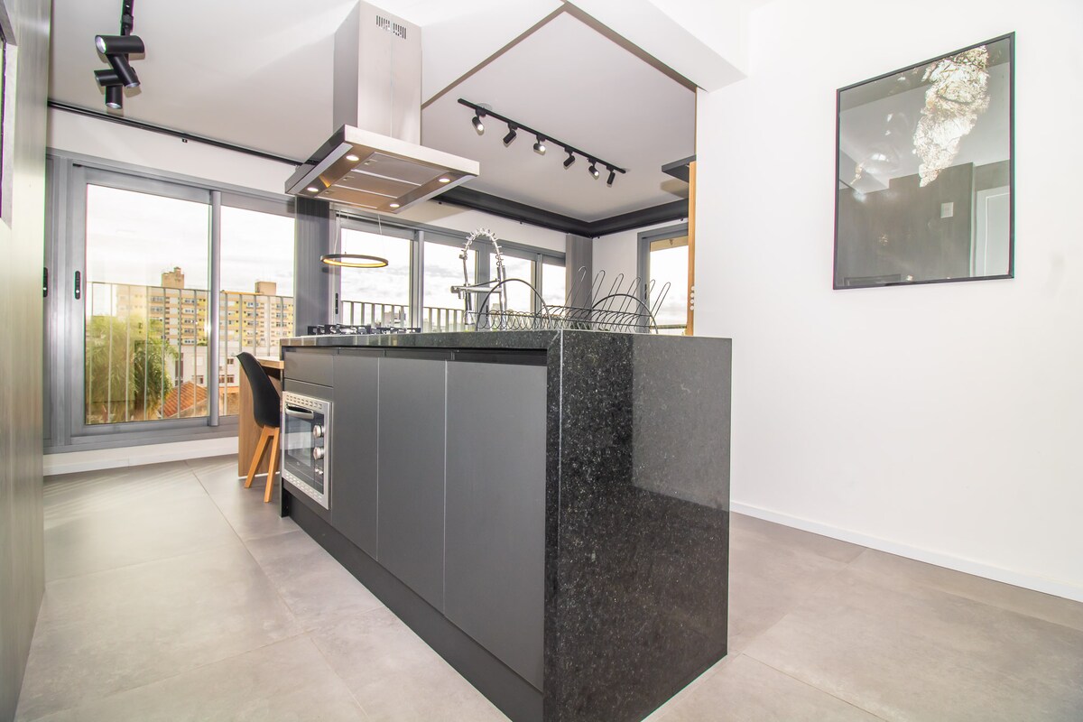 Studio with park view and automation/Alexa. Closed garage, kitchen with basic items and bed/bath linen. Located in a central area, rooftop with swimming pool, gym and coworking. Parque da Redenção a few meters away, Organic Fair and Brique on weekends, Refúgio do Lago gastronomy and concerts at the Araújo Vianna Auditorium. Close to the bars, restaurants and nightlife of the Cidade Baixa/Bom Fim neighborhoods. Easy access to the Guaíba Riverwalk, universities, hospitals and other neighborhoods.