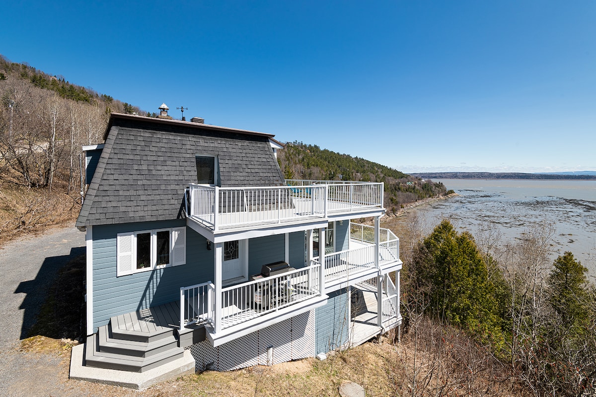 L'Abordage probably offers you the most beautiful view of Charlevoix! The house is built on the mountainside, on an intimate and very private site, close to all the bustling life of Baie-St-Paul. All floors have terraces and views of the river. Let yourself be carried away by the tides, observe the aquatic fauna, the ships, the changing seasons, let yourself be inspired by the surrounding landscape. We are waiting for you !