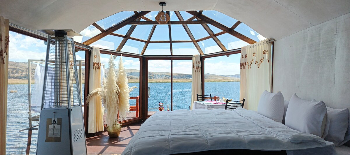 Welcome to Titicaca lodge Flotante, live a unique experience in front of the majestic Lake Titicaca, where the sky merges with the water in a dreamy landscape designed to make you feel at home to discover the living culture of the community participates in authentic activities and let yourself be enveloped by ancestral stories. Relax in rooms with private bathroom and hot water, views of the lake and with a terrace to enjoy the sunset, ideal to replenish after exploring