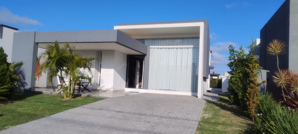 private beach, cinema, hot and cold pool, kids space, pet space condominium with everything inside, come and take your vacation with quality and safety. complete house with 2 en-suites, living room, American kitchen, barbecue area, laundry, TV in every room, air-conditioning in all rooms. offers all the comfort you deserve