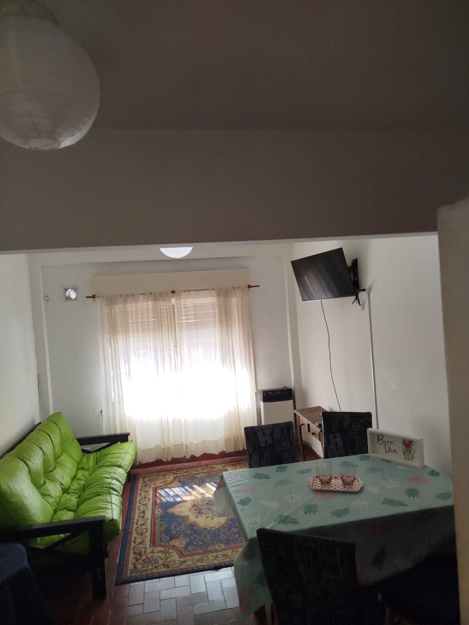 The apartment is in a prime location. It is a half block from Av. Eden, La Falda's main artery. Area with ATMs, restaurants, businesses and supermarkets. Everything is very close. Just a 5-minute walk from the Parish and 12 minutes from the Eden Hotel. * Optional garage It is furnished with: - Two single beds and a sailor bed - Sofa bed - Air conditioning - Central heating -Smart TV - Microwave, electric kettle, etc. - 100 Mb Wi-Fi