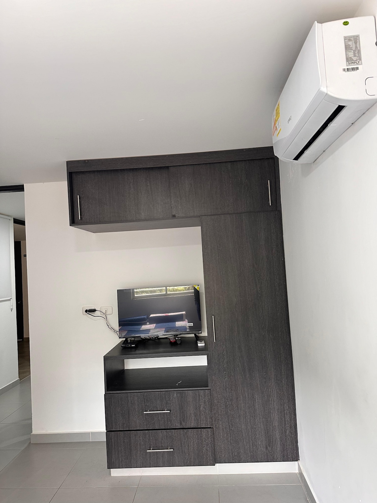 Apartaestudio nuevo con Aire acondicionado amplio elegante, tranquilo, excelente ventilación natural, excelente iluminación natural, nada de humedad, no encerrado tiene ventanas que dan hacia la calle y también otra hacia la parte trasera de la casa, además tiene un balcón que da hacía la calle, concepto abierto, la cama es de 160 CM colchón semi ortopédico más un sofá cama, escritorio de trabajo TV Smart TV, lavadero, lavadora y tendedero de ropa. cocina con elementos necesarios y nevera.