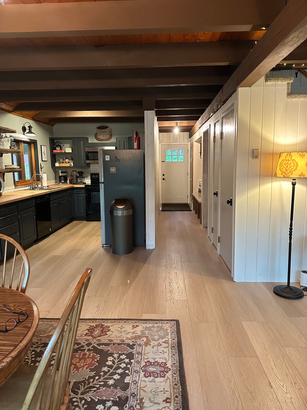 Treat yourself to a deluxe stay in this quiet, newly constructed cabin with picture windows, screened porch and barrel sauna. Enjoy long days and sunsets at Corny Beach, a 10 min walk from the cabin along a nature trail. Visit Bayfield 20 min away or take in the quirky, small-town of Cornucopia and then come home and take a sauna in this peaceful forest! The cabin has an occupancy limit of 2 adults and one dog ($50 pet fee). A SUP board is stored near the beach for guests in summer.